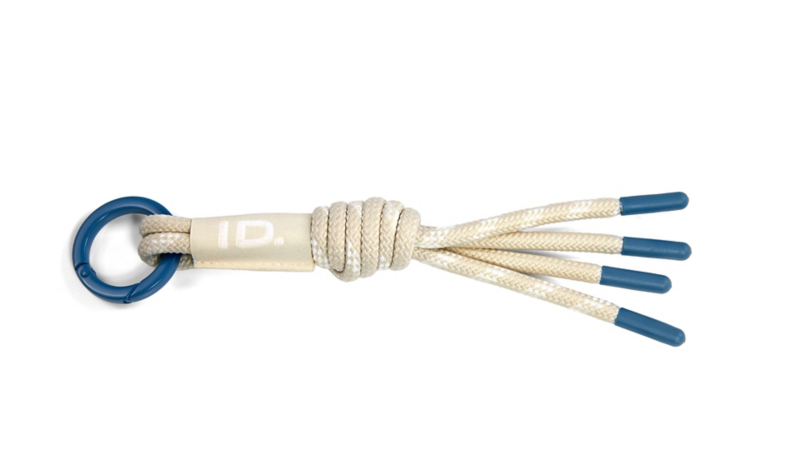 Portachiavi realizzato in poliestere riciclato, caratterizzato da un elegante intreccio bicolore e arricchito da un resistente moschettone in lega di zinco opaco. Un accessorio pratico, moderno e attento all’ambiente.